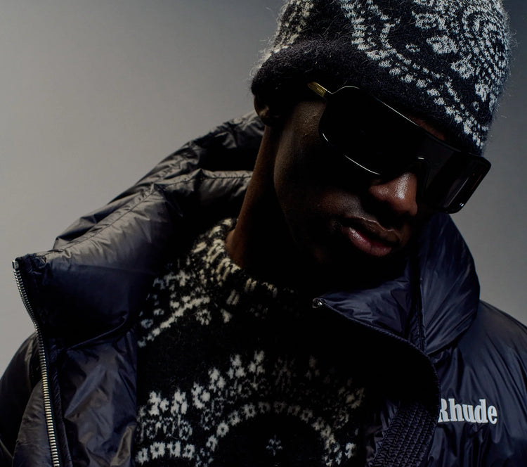 The ZIPPERED HOOD LUNDUN JACKET blends heavyweight comfort with standout style. Featuring the signature Rhude...