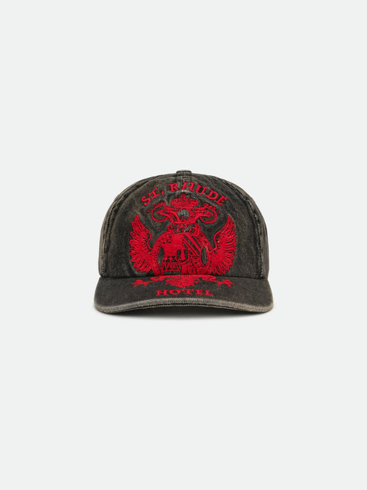 Curved brim cap with St. Rhude seal design fully embroidered on the front. Features an...