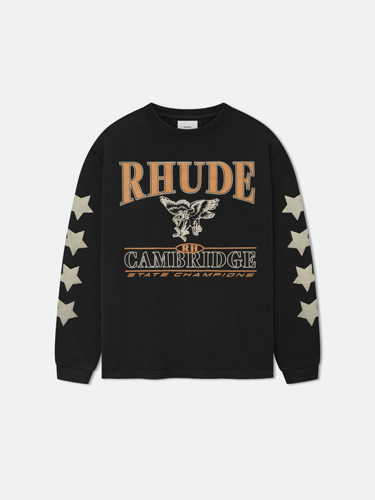 Premium washed cotton long sleeve features Rhude classic script logo placed at front chest and...
