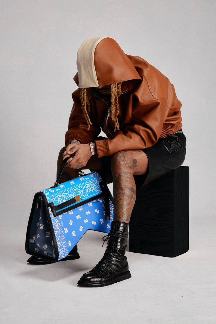 Add a touch of elegance and sophistication with our premium Leather mini bag with RHUDE bandana...