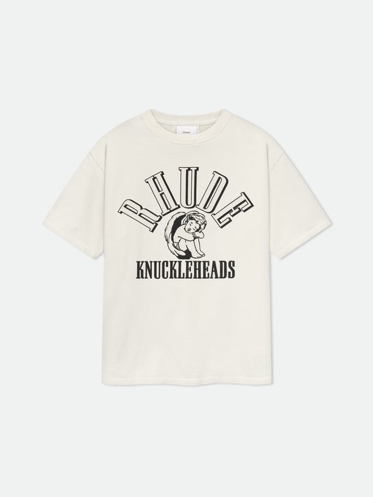 Custom-fit vintage wash cotton short sleeve tee-shirt with Rhude "Knuckleheads" graphics printed at front, with a...