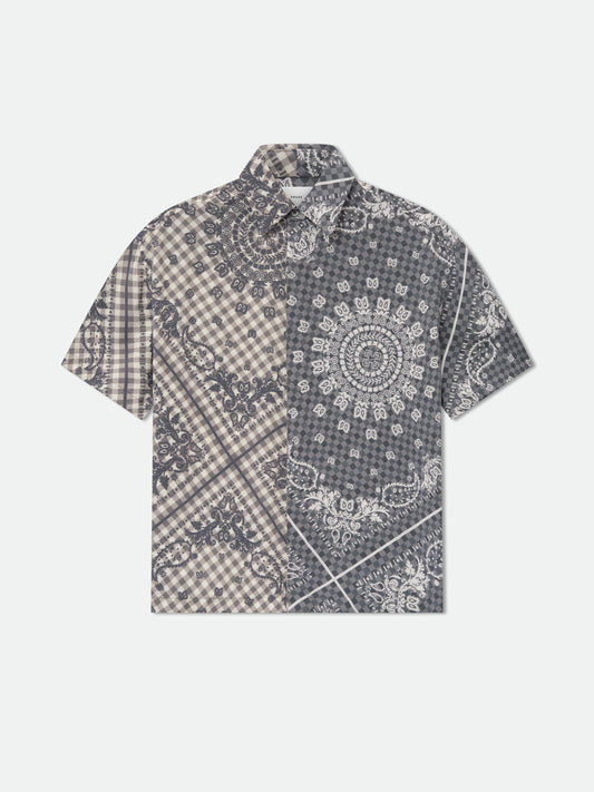 Premium woven shirt crafted from mid-weight rayon. Features a camp collar, button down styling, and flat...
