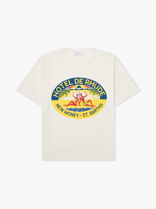 Custom-classic fit cotton tee shirt with a ribbed neckline and short sleeves. Features Hotel de...