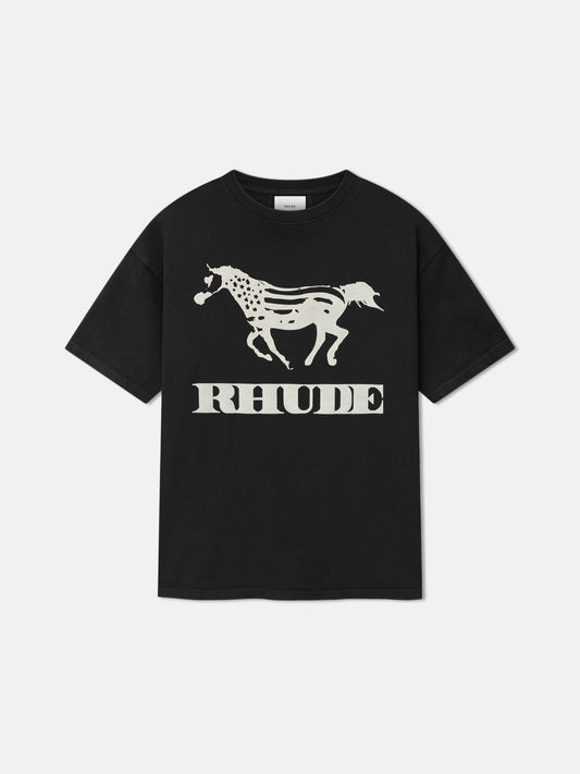 Custom-fit vintage wash oversized cotton short sleeve tee-shirt with Rhude Diex Shield graphics puff printed...