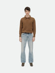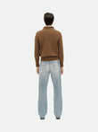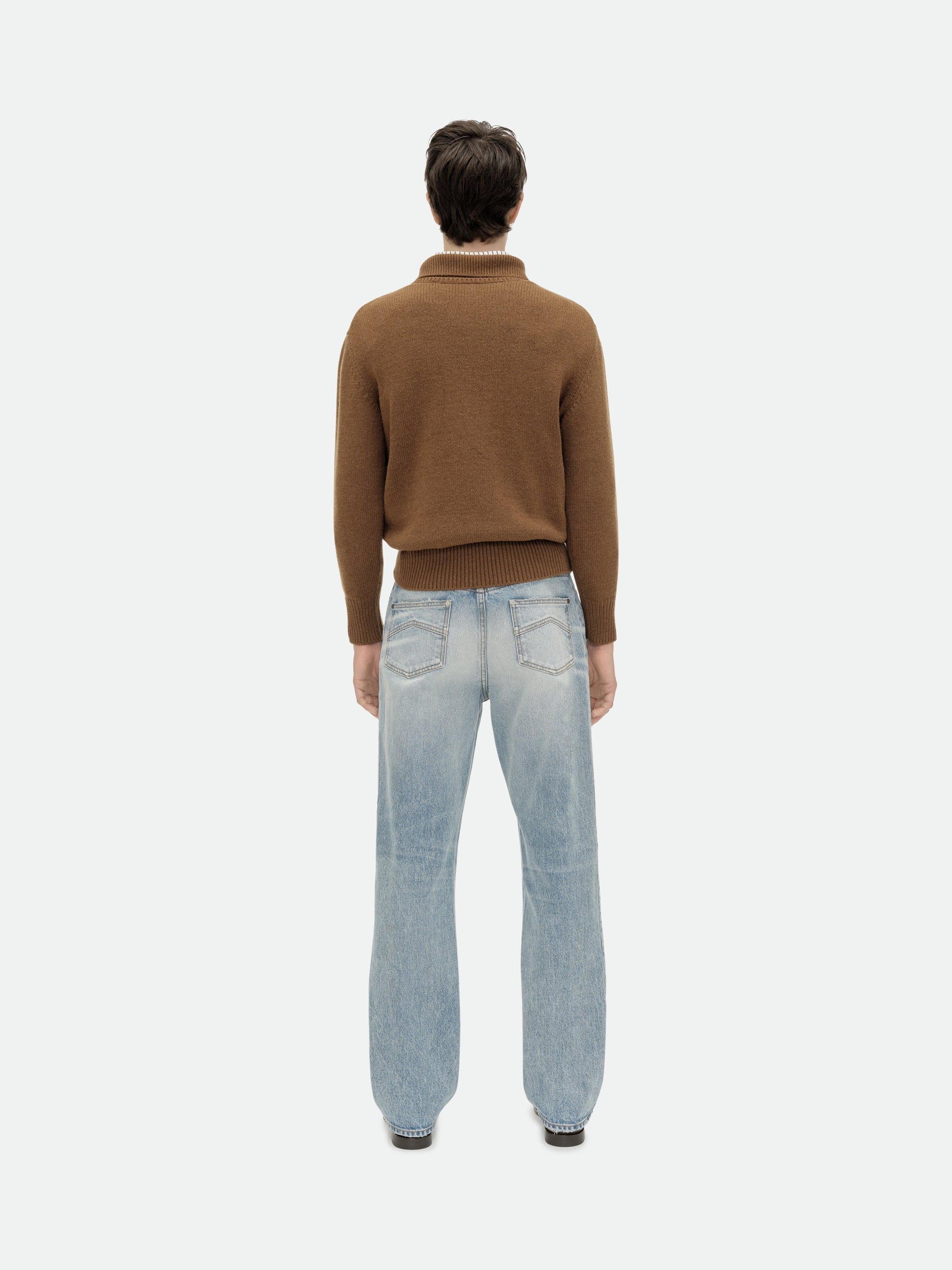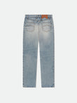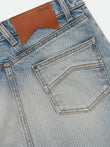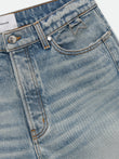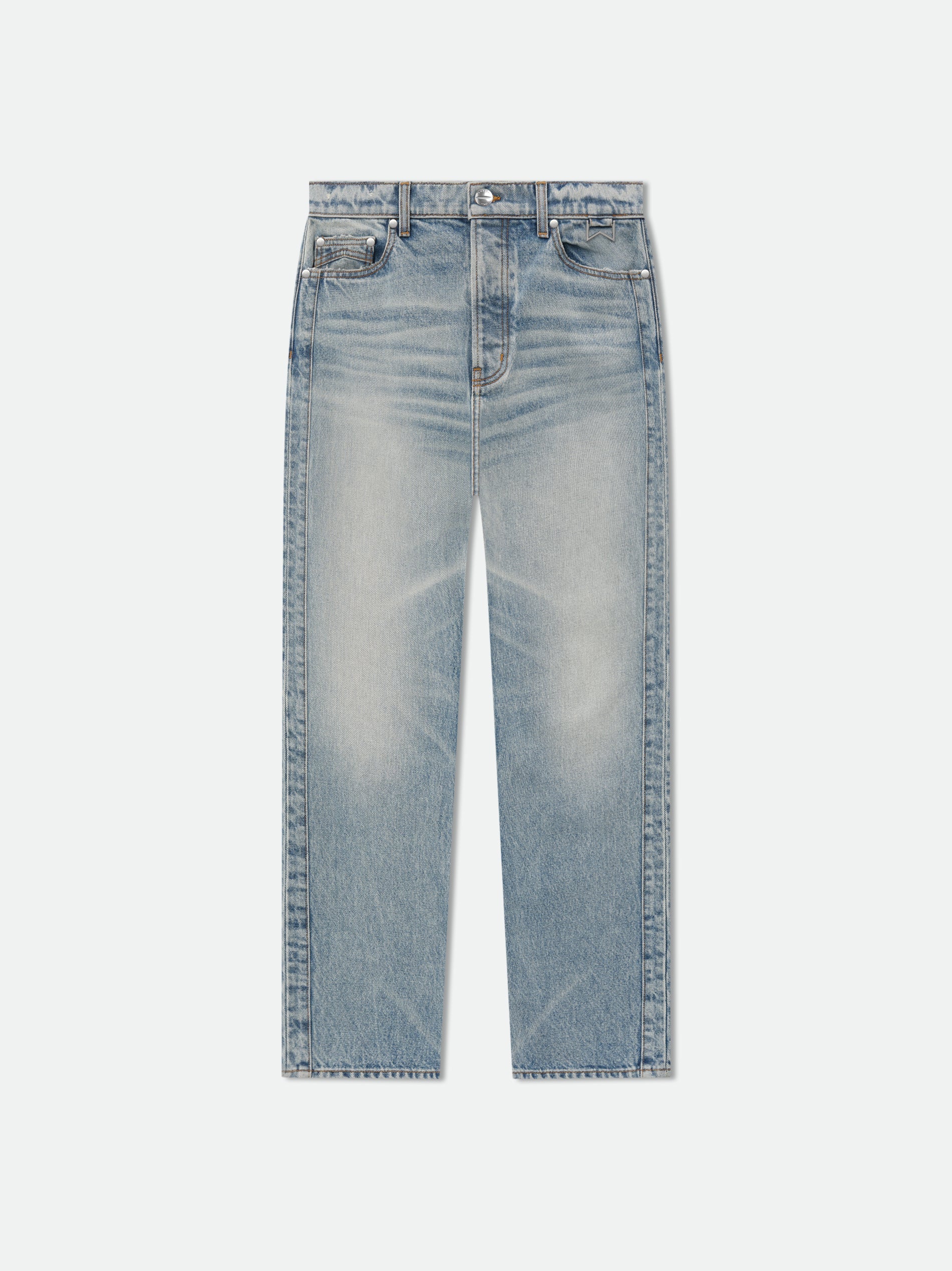 Classic Fit Stretch Cotton Denim Jeans. Replicates the perfect 90's denim silhouette with our premium materials and construction. Mid rise with signature seamlines, a premium leather back patch, and custom Rhude Closure button & hardware.