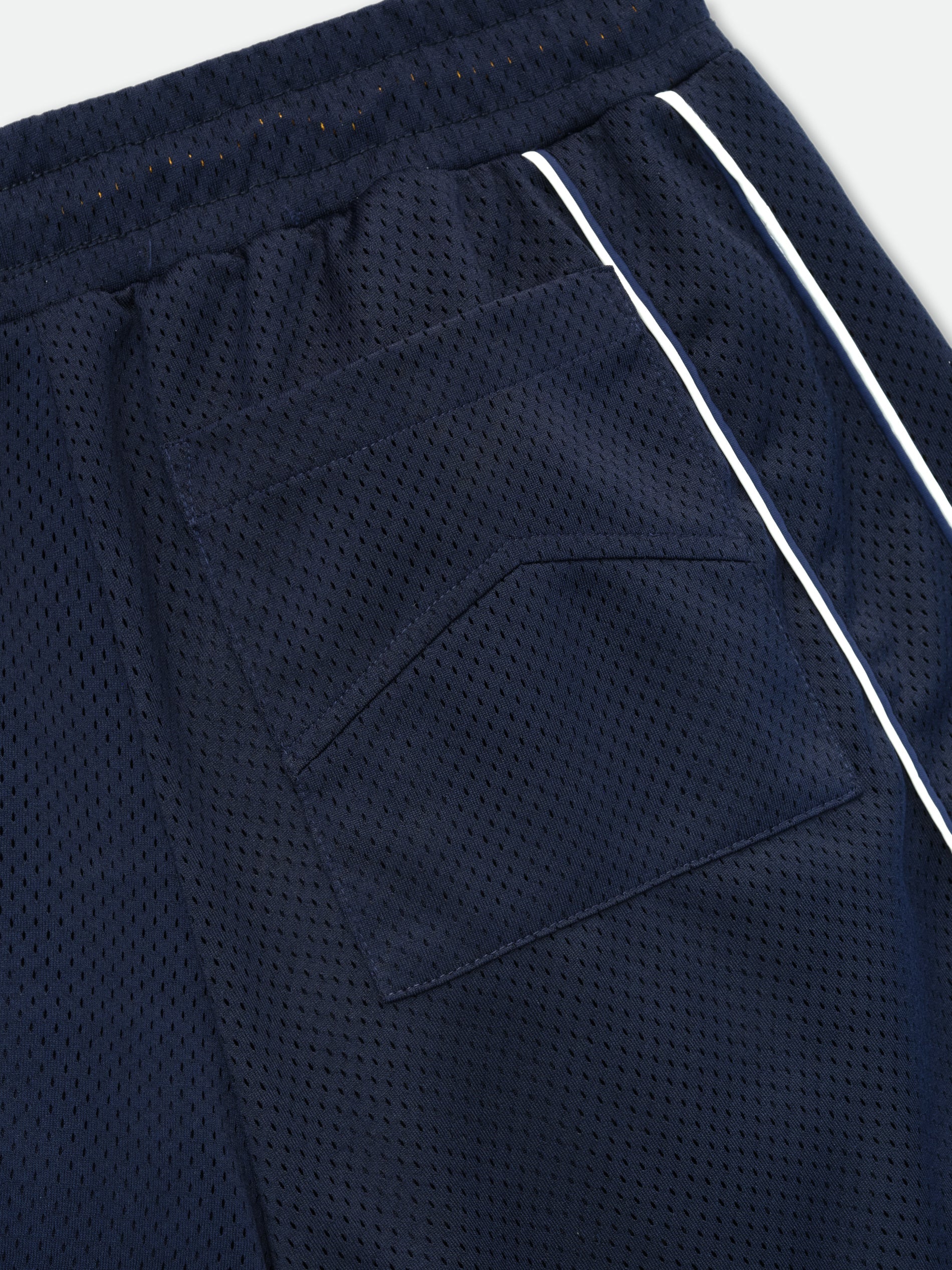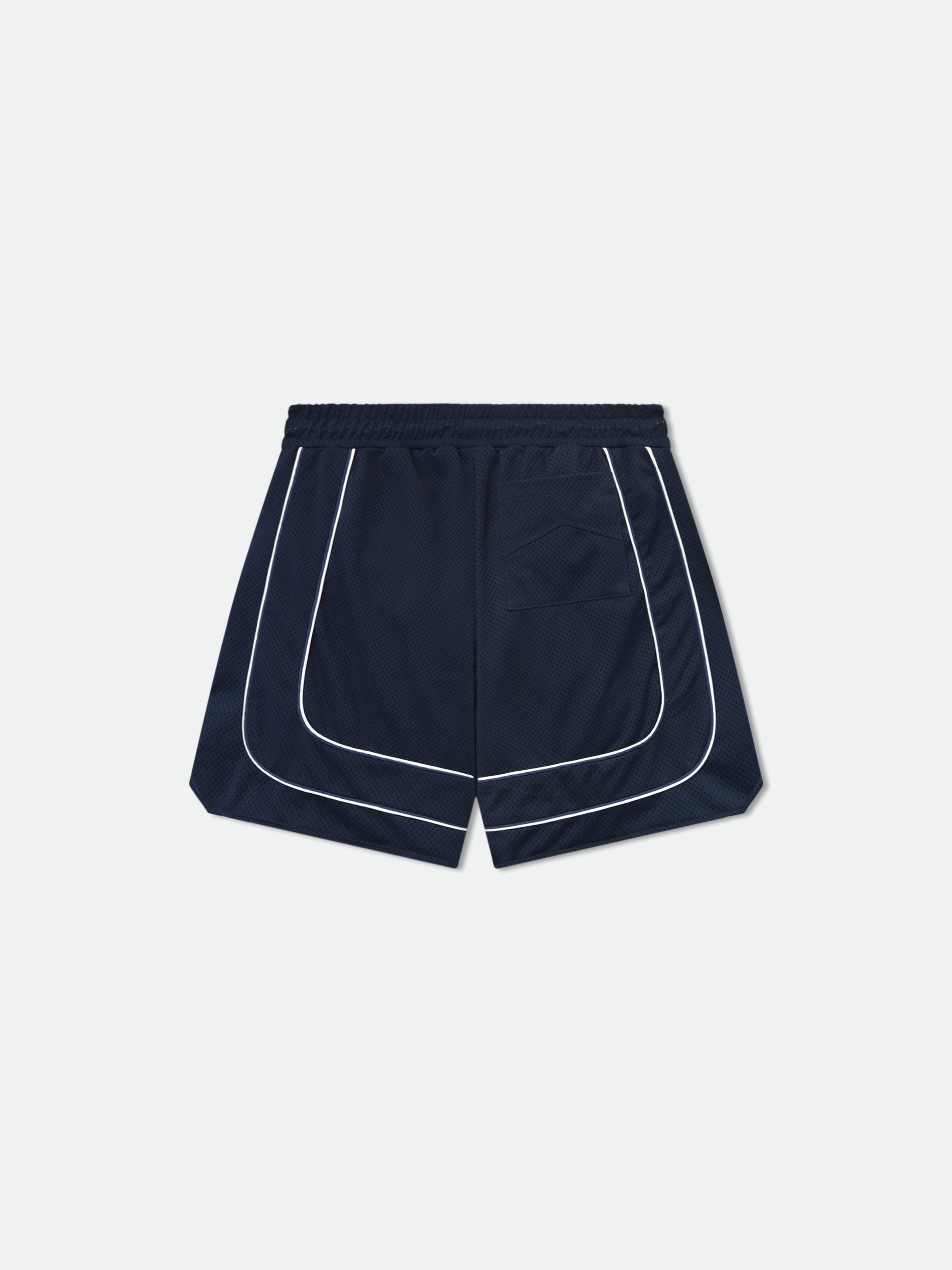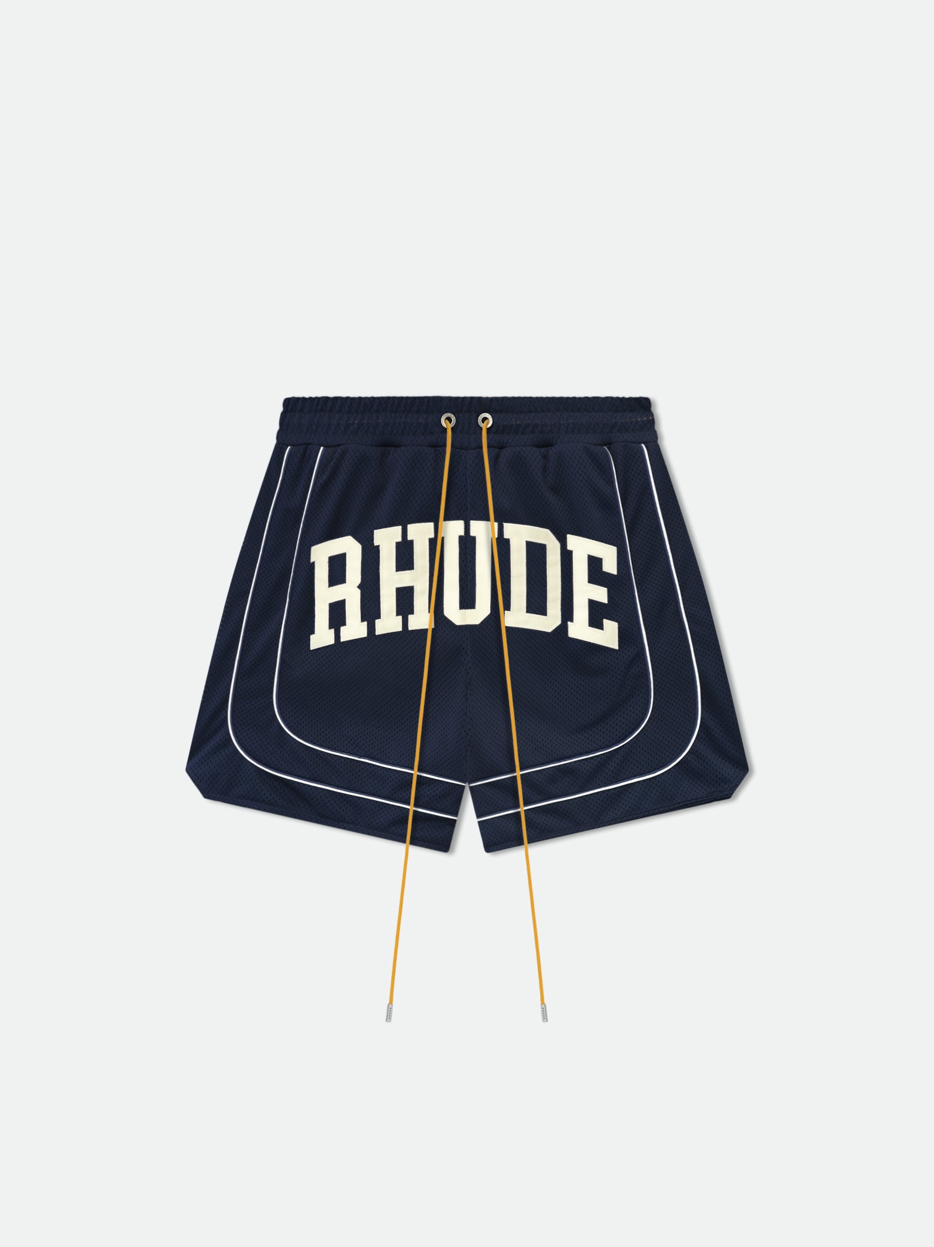 Crafted from premium poly mesh, these collegiate logo shorts feature a distinctive logo running across the front legs. Features a singular pocket on the back for added functionality. Equipped with extended drawstrings in our signature mustard tone.