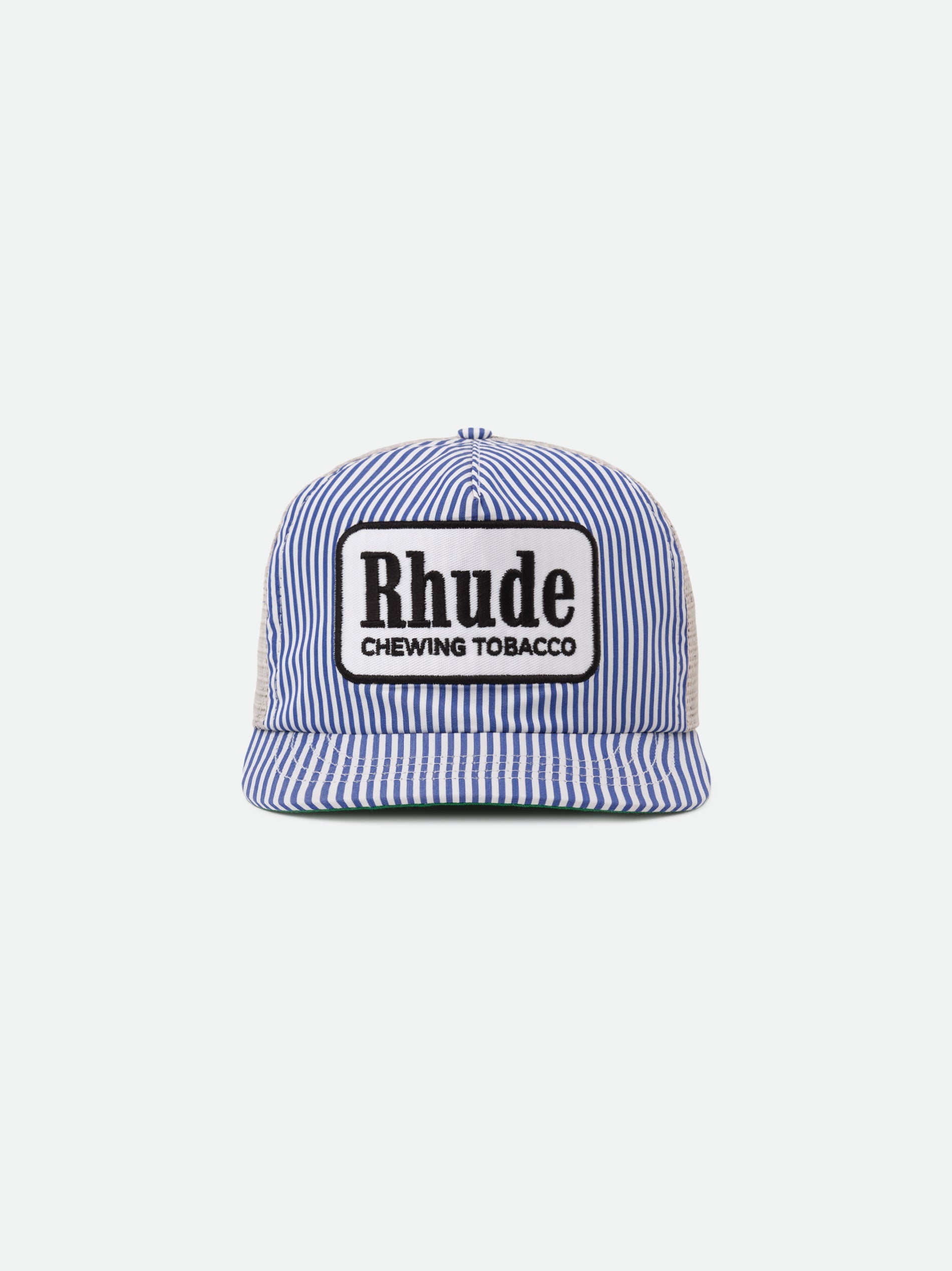 BLUE STRIPED TOBACCO TRUCKER HAT