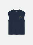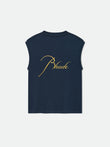 This custom fit shirt replicates the perfect 90's t-shirt using our premium materials and construction. Features cut off sleeves, with signature Rhude script logo embroidered on the front.