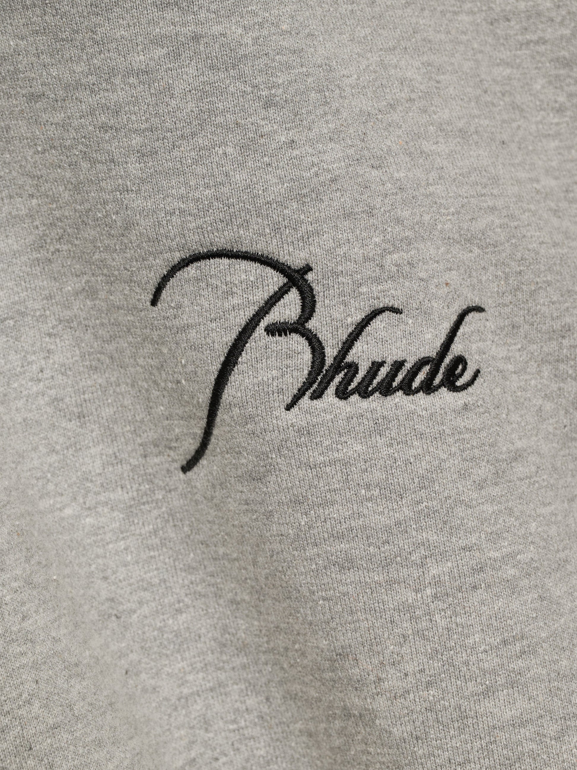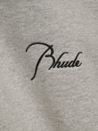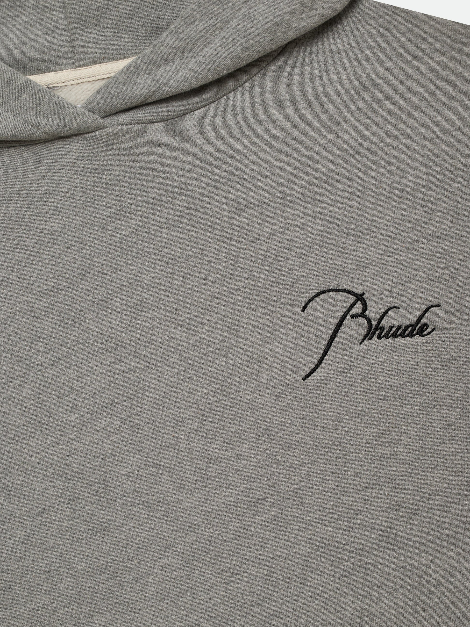 Long sleeve heavyweight cotton hoodie with Rhude script logo embroidered on the front. Featuring a kangaroo front pocket and dropped shoulders. Each piece is unique and shade my vary per style.