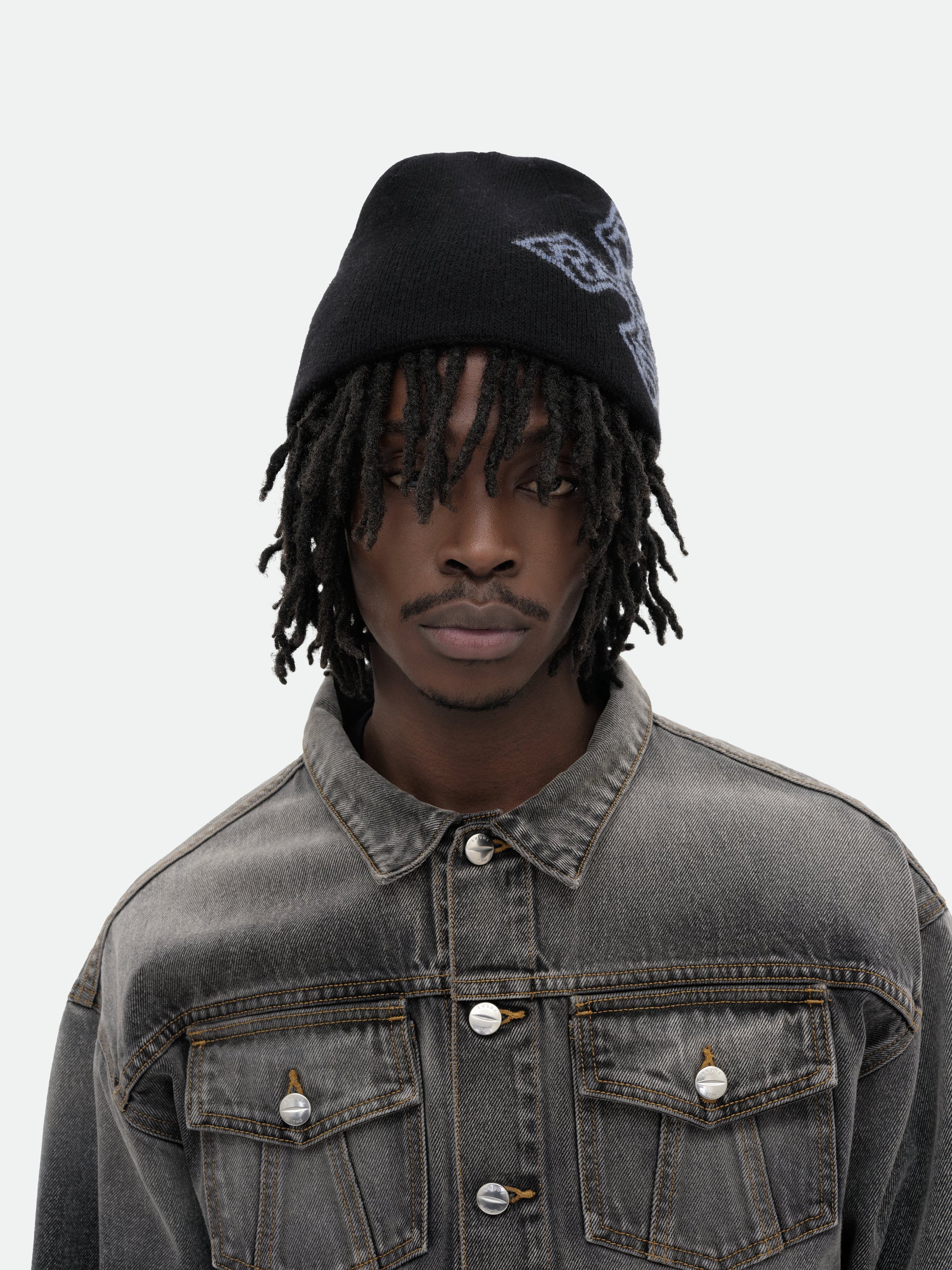This luxurious knit beanie is expertly crafted from a high-quality cashmere blend, complemented by the iconic Rhude cross design with logo.
