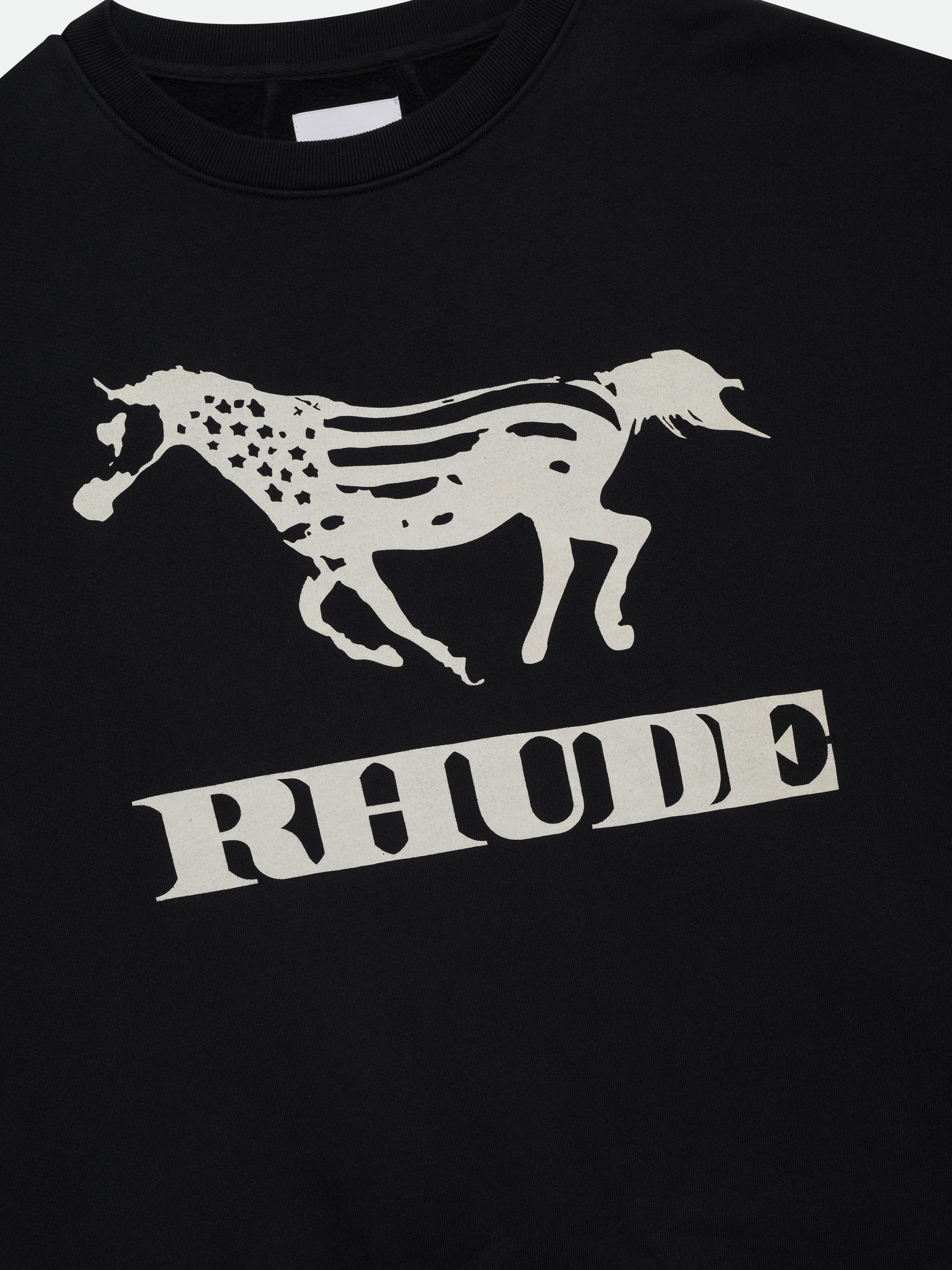 This long-sleeve cotton crewneck showcases Rhude "Dinero" designs on front, with a clean back. It features a comfortable pull over styling, and dropped shoulders for a relaxed, effortless fit.