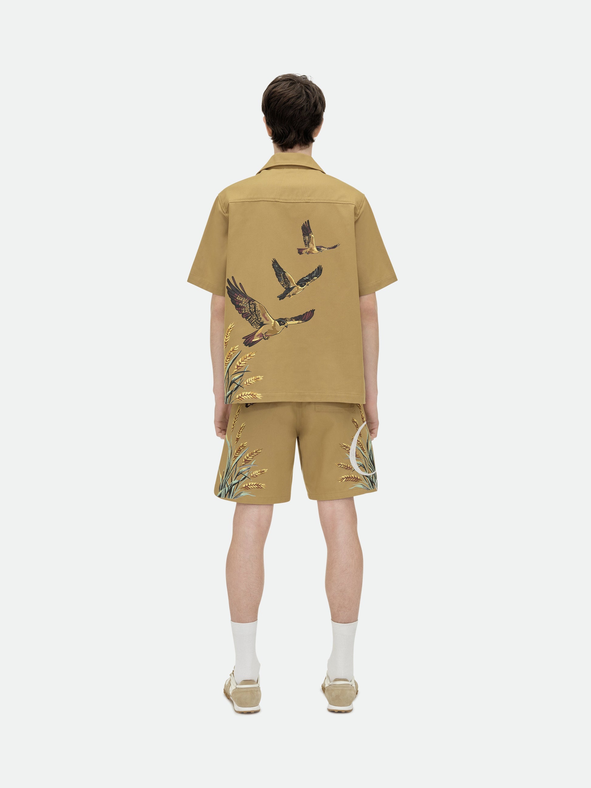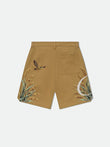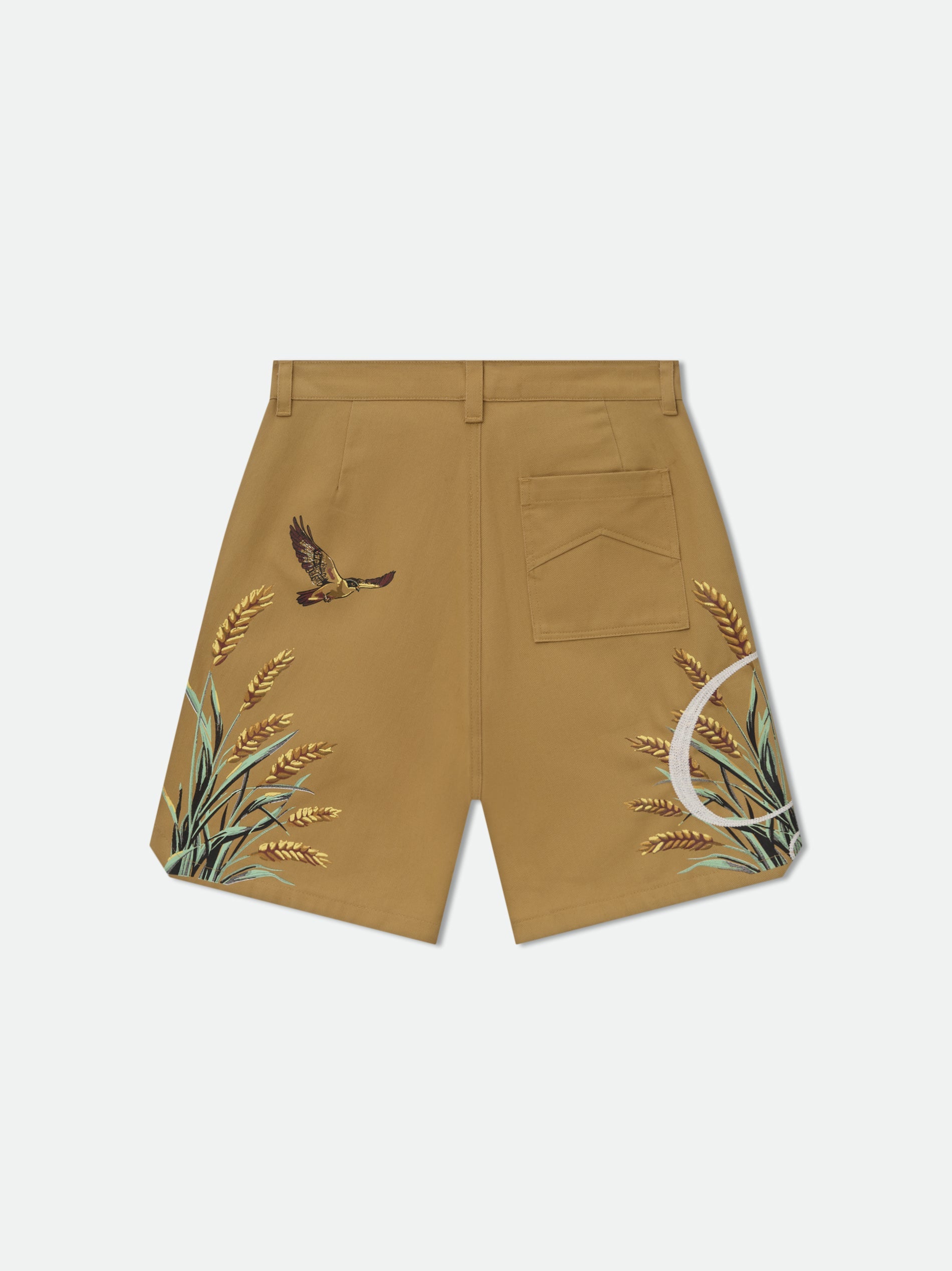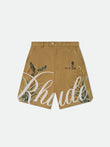 Crafted from premium cotton, our shorts provide a comfortable fit. These shorts feature our Script logo placed on front with falcon designs, a mid-rise design with signature seamlines, adorned with a custom Rhude Closure button & chevron back pocket.