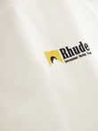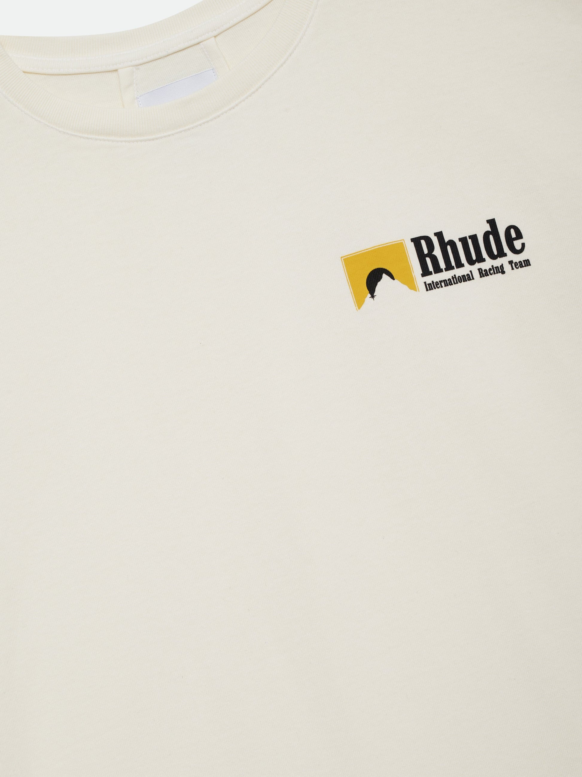 Custom-fit vintage wash cotton short sleeve tee-shirt with Rhude "International Racing" graphics printed at front, with a clean back.