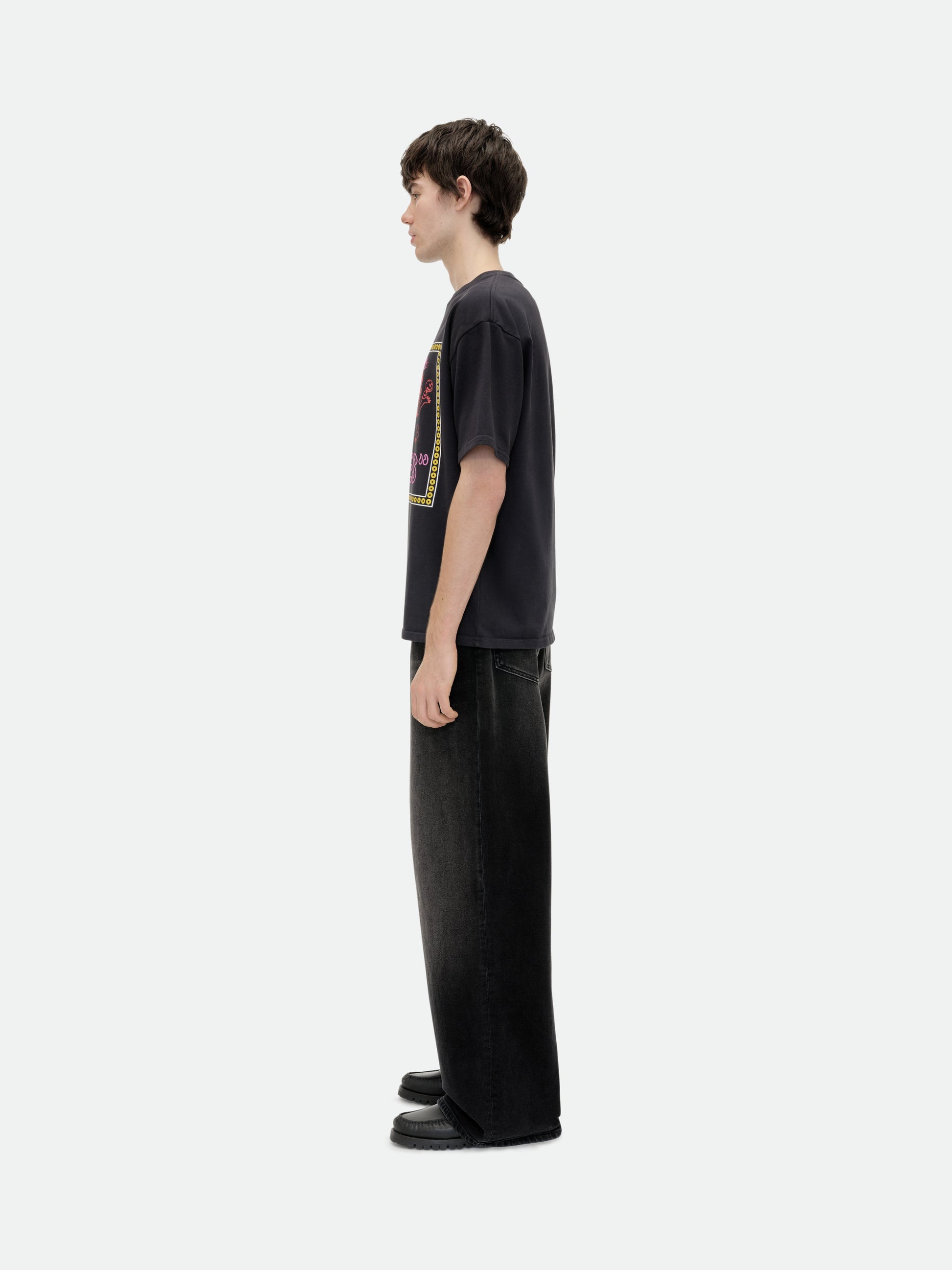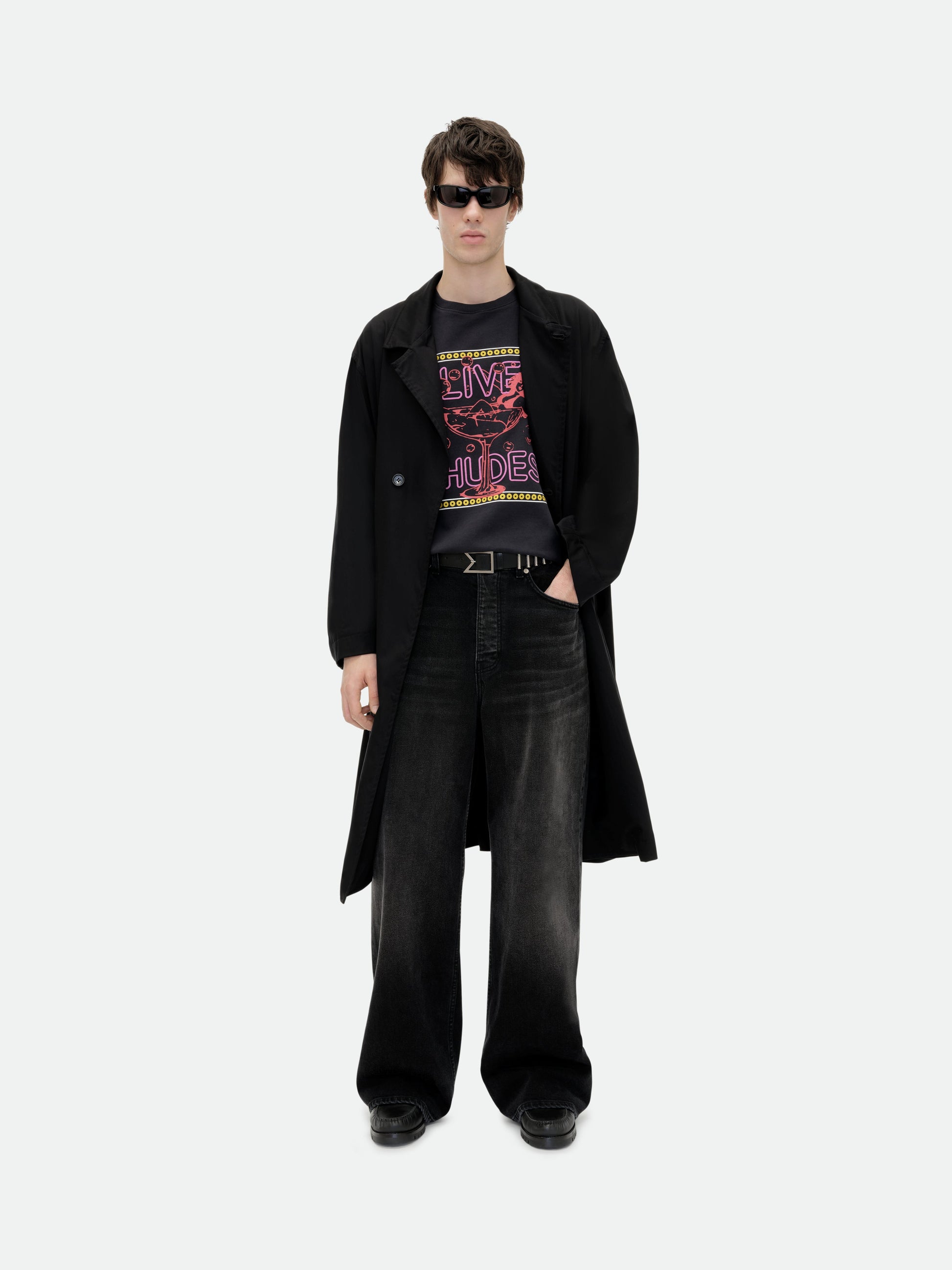 Custom-fit vintage wash cotton short sleeve tee-shirt with Rhude "Live Rhude" inspired graphics printed at front, with a clean back.