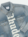 Expertly crafted with premium materials, this denim trucker jacket features RHUDE logo printed on front, a removable neck strap, twin pockets, and side pockets at the front. Custom Rhude button closures add unique style to this handcrafted piece, made in Los Angeles.