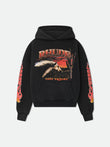 Long sleeve cotton heavyweight hoodie with Rhude "Mesa Stallion" graphic designs printed on the front and sleeves, with a clean back. Featuring a kangaroo front pocket and dropped shoulders. Each piece is unique and print distressing my vary per style.
