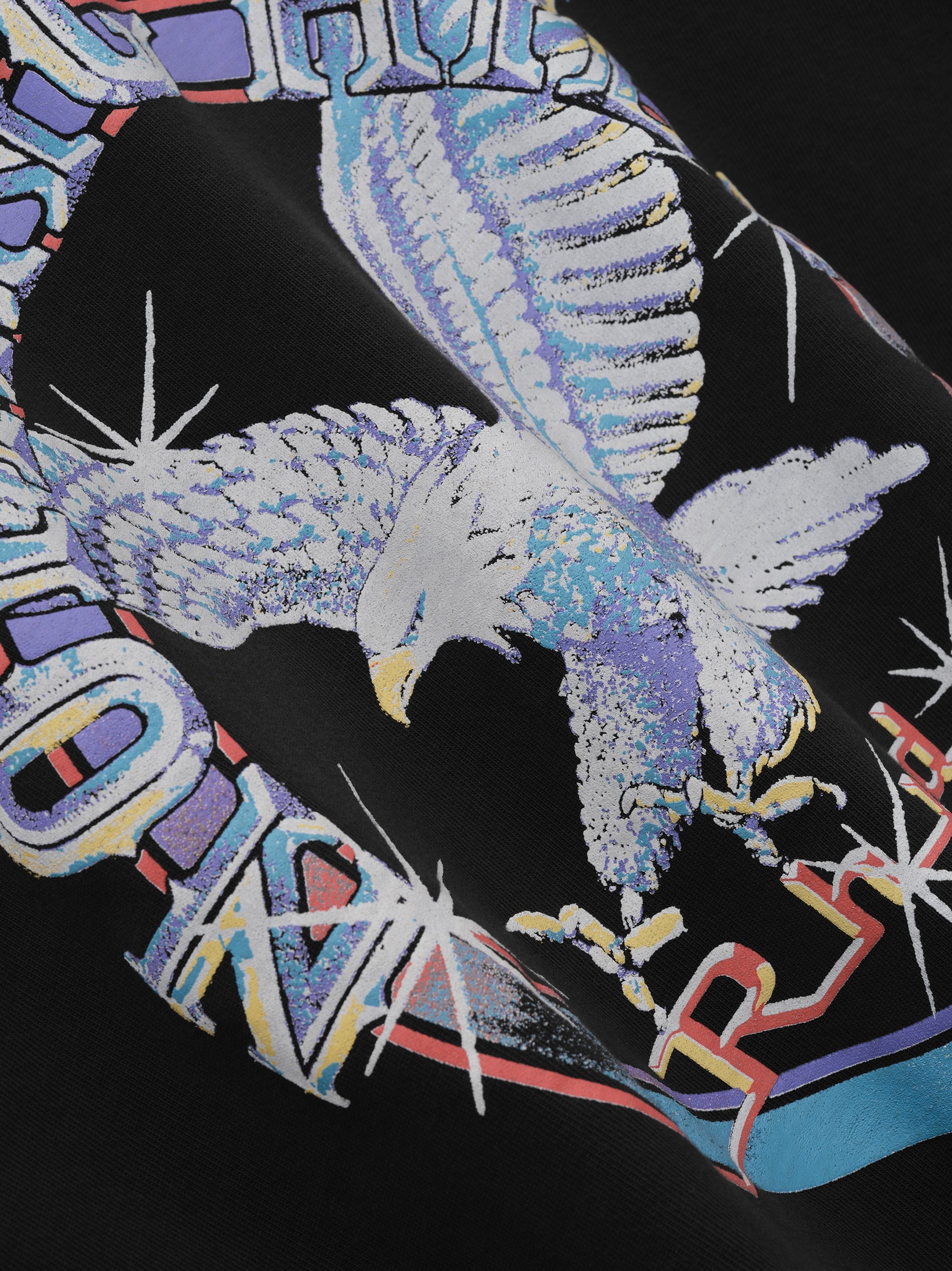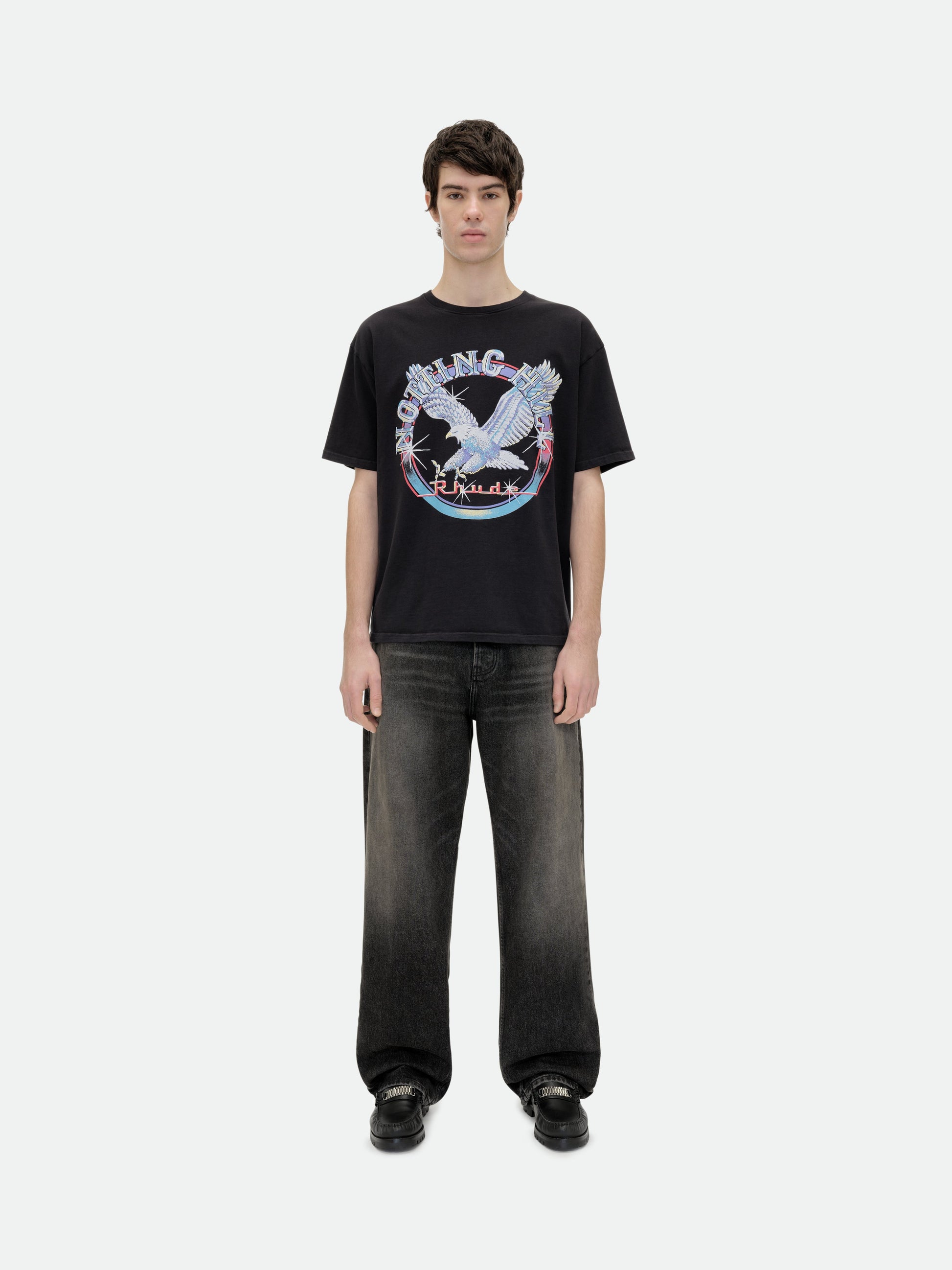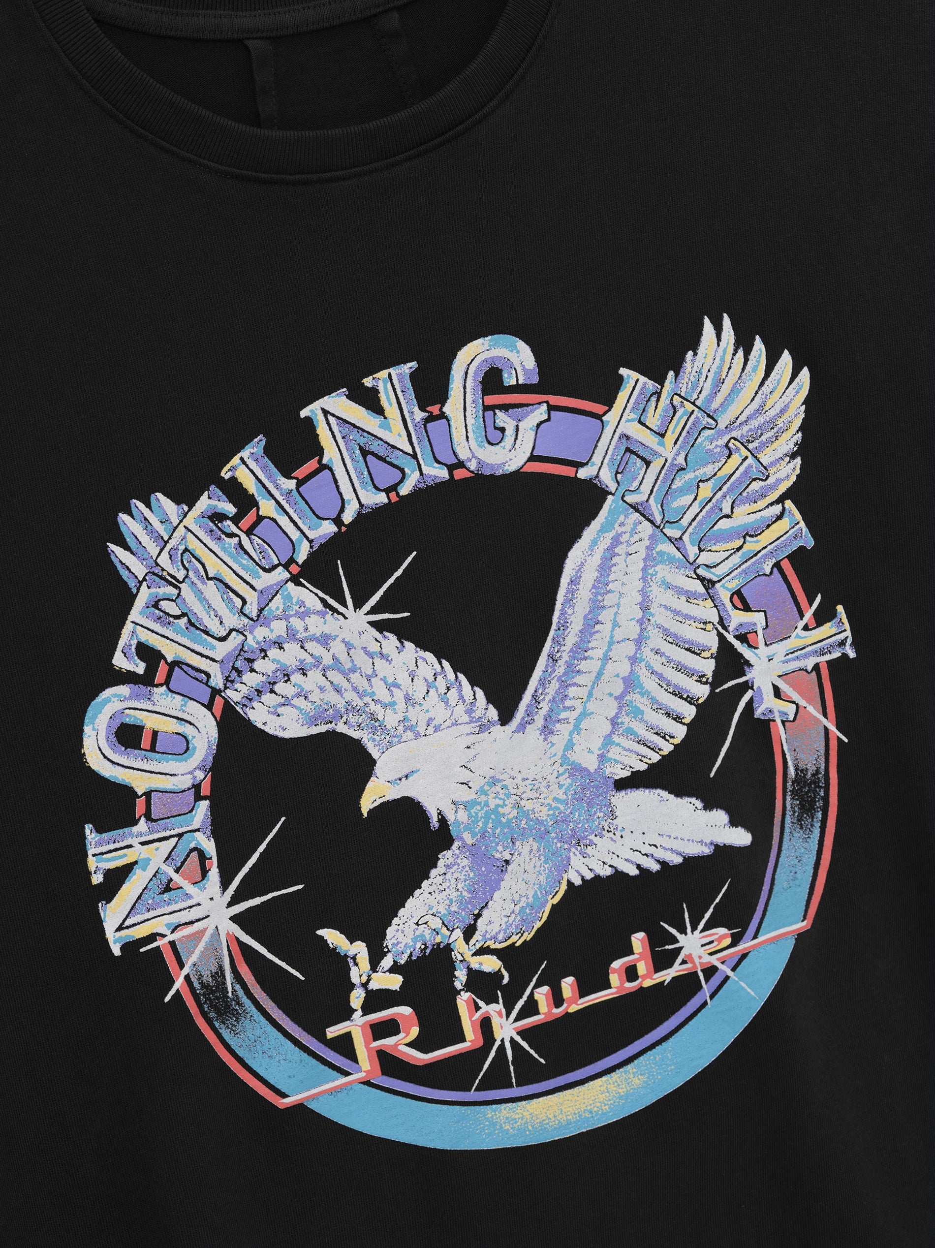 Custom-fit vintage wash cotton short sleeve tee-shirt with Rhude "Notting Hill Eagle" inspired designs printed at front, with a clean back.