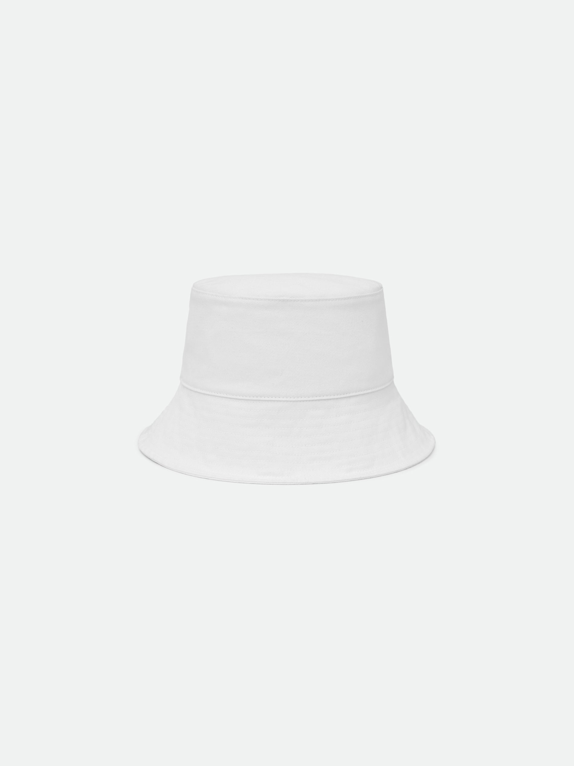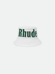 Heavyweight cotton bucket hat featuring oversized "Rhude" logo printed on the front.