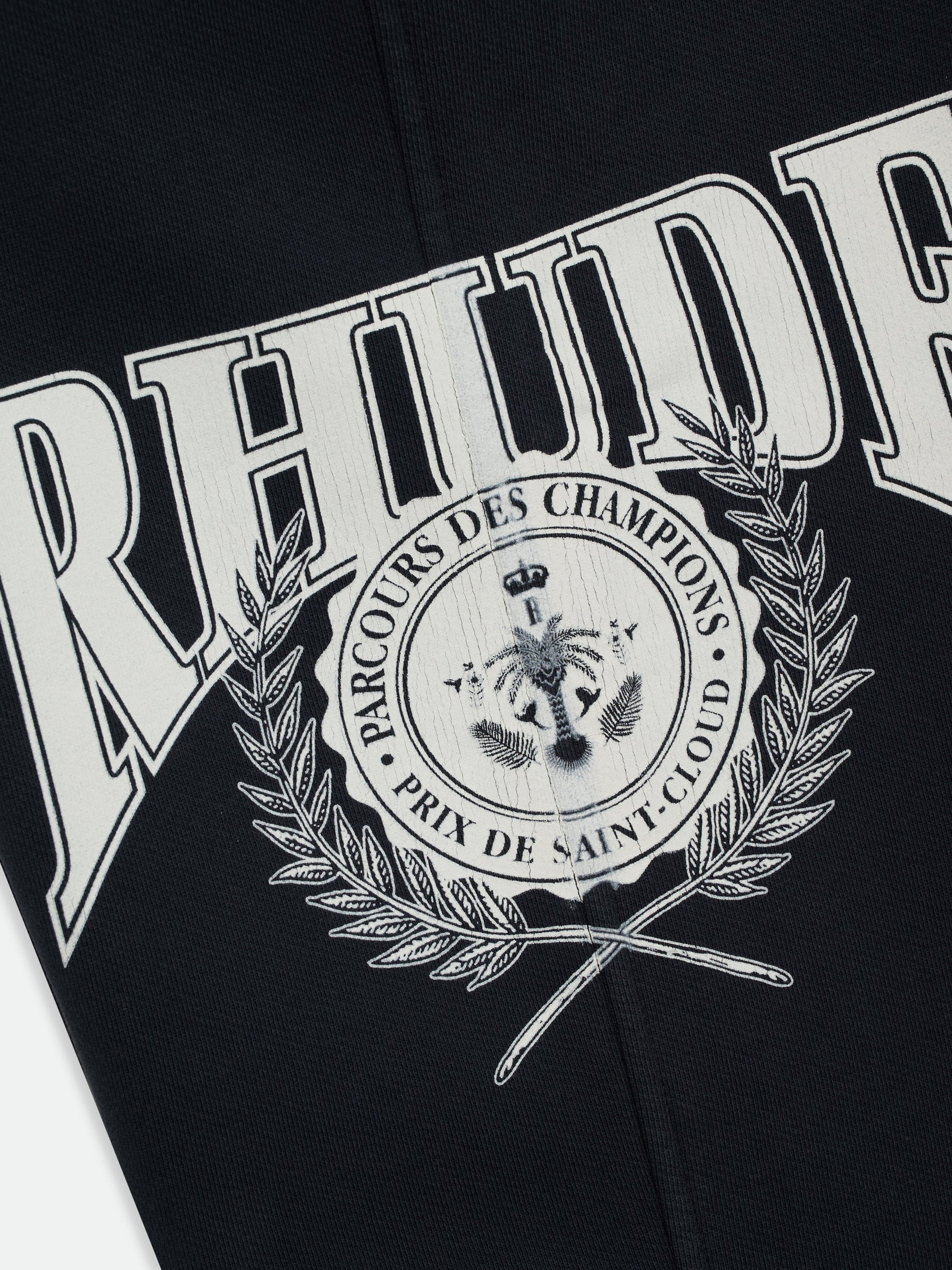 Heavyweight cotton sweatpant with signature Rhude Parcours printed on the leg, featuring our exaggerated drawstrings in mustard tone. Finished with structured cuffed ankles.
