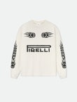 This custom boxy-fit premium washed cotton long sleeve replicates the perfect 90's shirt using our premium materials and construction. Features co-branded Rhude x Pirelli logos and graphics printed on front and back.