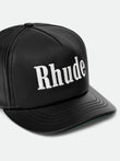 Heavyweight leather cap with classic Rhude logo embroidered on the front. Features an adjustable snap strap at the back, so you can adjust the fit to your preference, and green under brim.