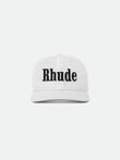 Heavyweight vintage trucker cap with Rhude classic logo embroidered on the front. Fully constructed with a breathable mesh material. Features an adjustable snap strap at the back, so you can adjust the fit to your preference, and green under brim.