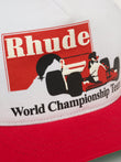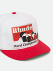 Heavyweight cotton cap with Rhude "World Championship Team" design printed on the front. Features an adjustable strap at the back, so you can adjust the fit to your preference, and green under brim.