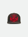 Curved brim cap with St. Rhude seal design fully embroidered on the front. Features an adjustable strap at the back, so you can adjust the fit to your preference, and green under brim.